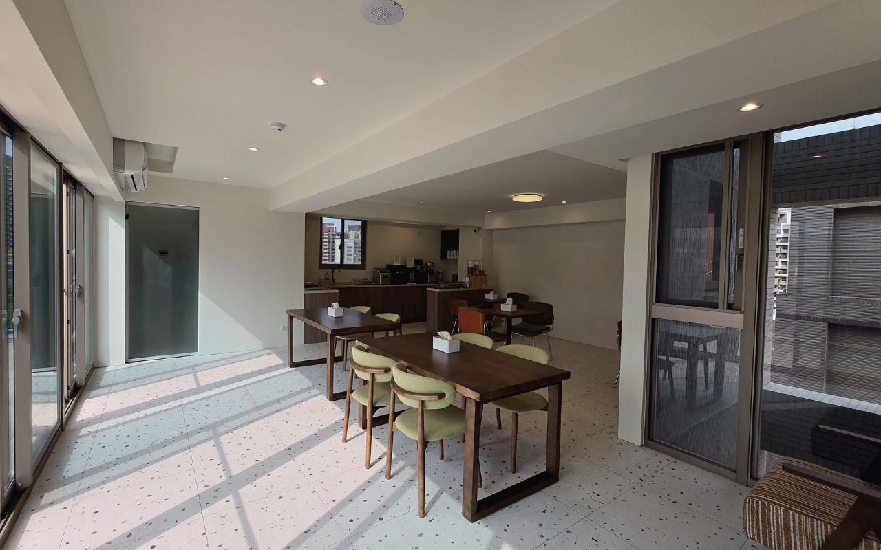 頂樓公共空間提供迎賓小點,並備有香檳級 COVA 氣泡飲水機與 Julius Meinl 咖啡,讓每一次停留,都能在城市之中享受片刻放鬆與從容。